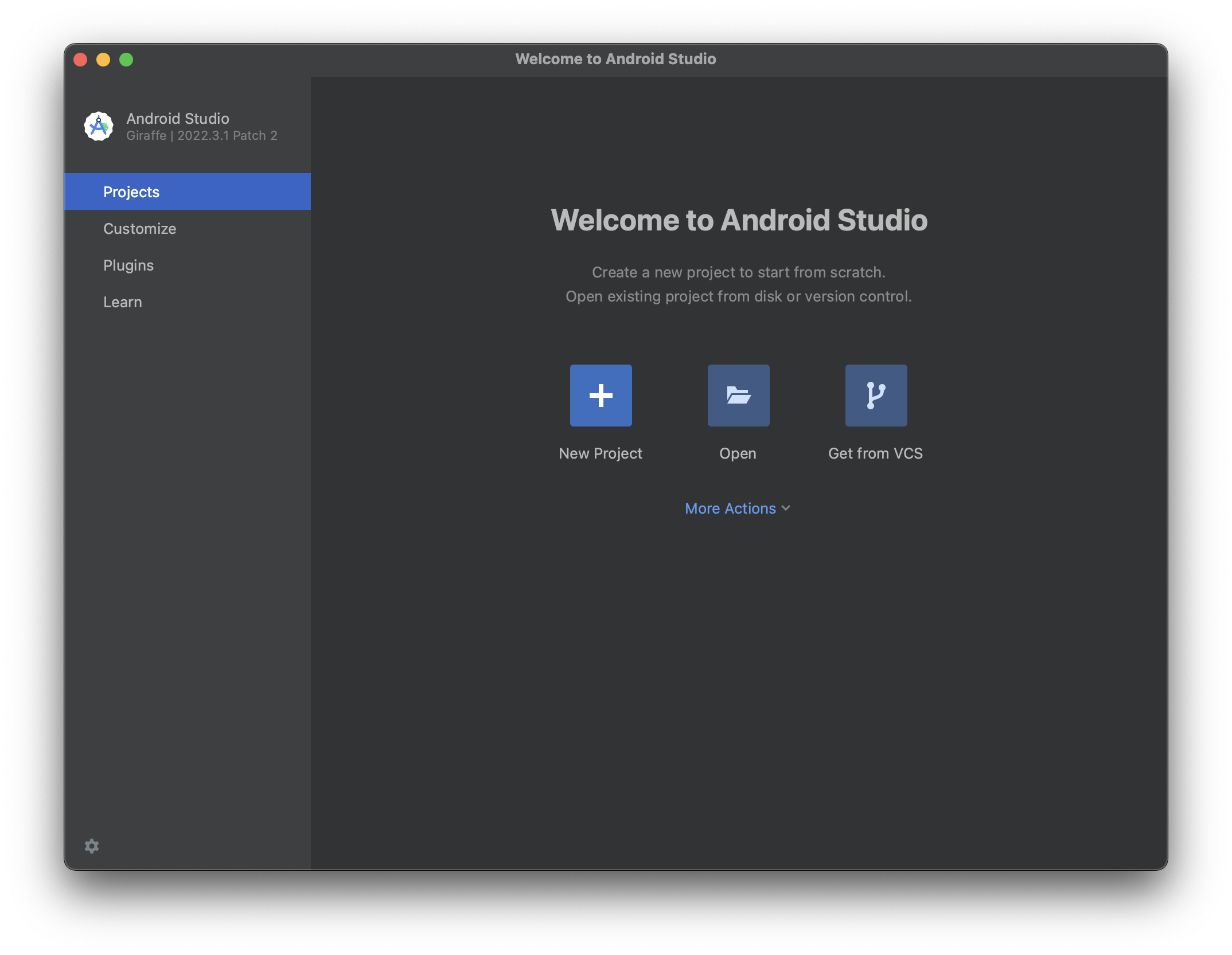 Agora, ao abir o Android Studio você se deparará com essa janela aqui: