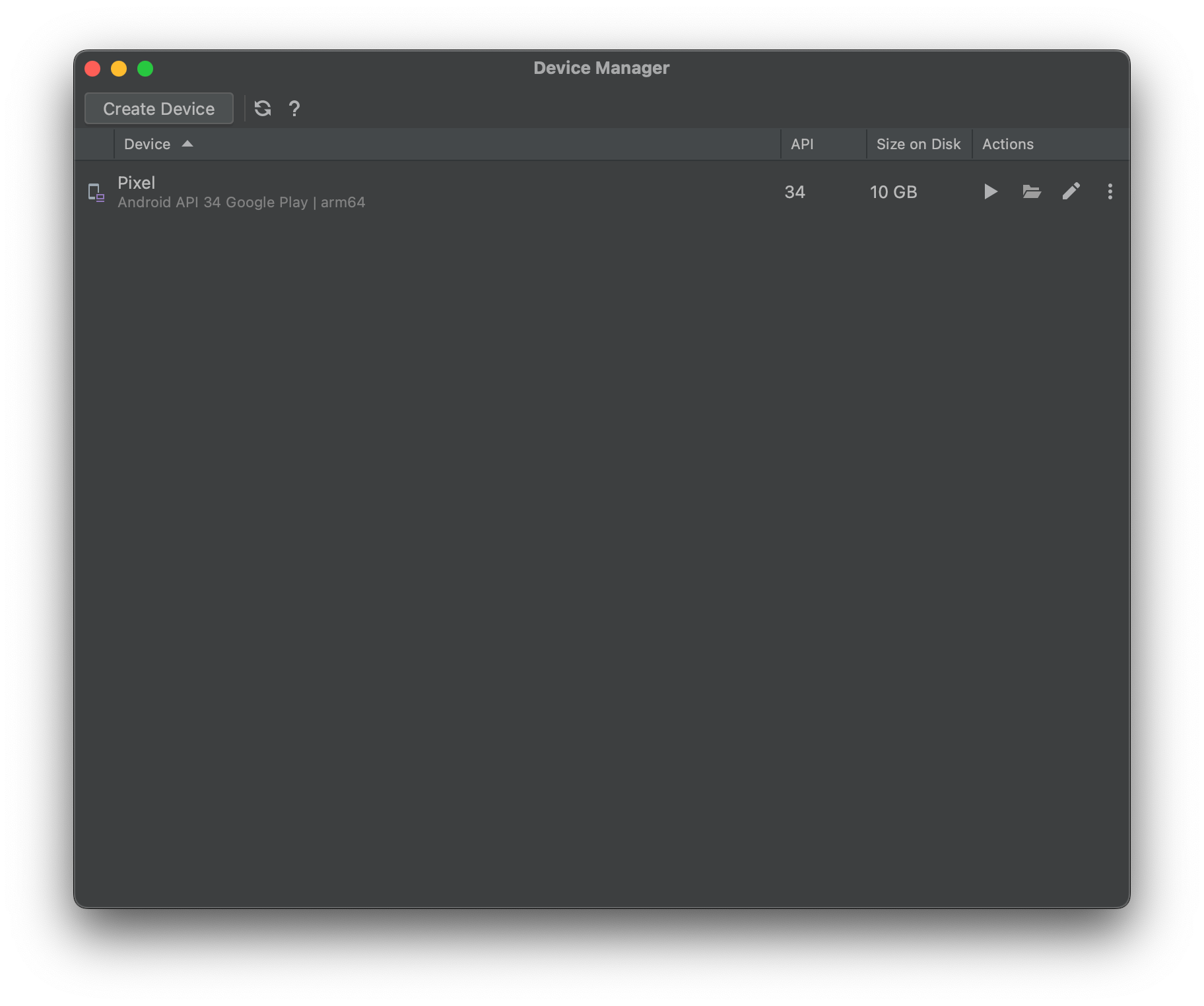 Pronto, agora o emulador está pronto para ser usado. Basta clicar no botão de “Play” ou utilizar outras formas de iniciar o emulador que você tenha no seu ambiente.