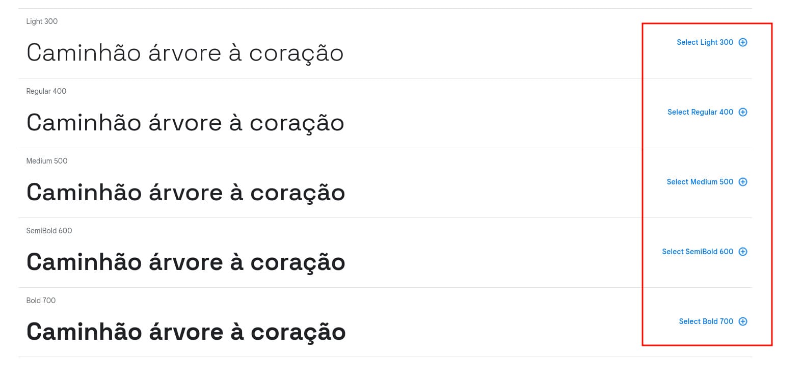 Após ter certeza que a fonte que você deseja utilizar atende as suas necessidades, basta selecionar as versões da fonte que você deseja importar na sua aplicação clicando no botão de selecionar.