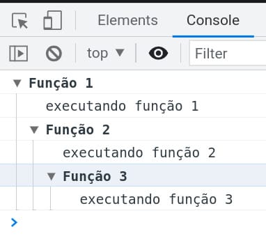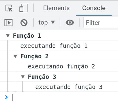 Note que como eu chamei a função duas vezes, temos dois grupos distintos aparecendo no console. Também podemos ter grupos dentro de grupos, como no exemplo abaixo: