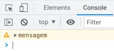 O método console.warn é bem similar ao método anterior, porém exibe a mensagem com uma formatação de aviso.