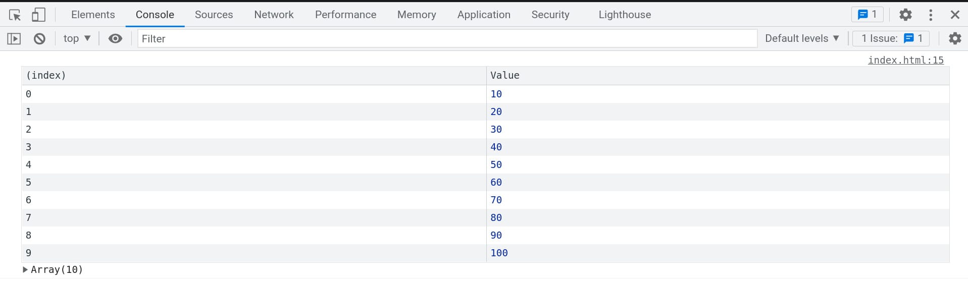 let arr = [10,20,30,40,50,60,70,80,90,100]