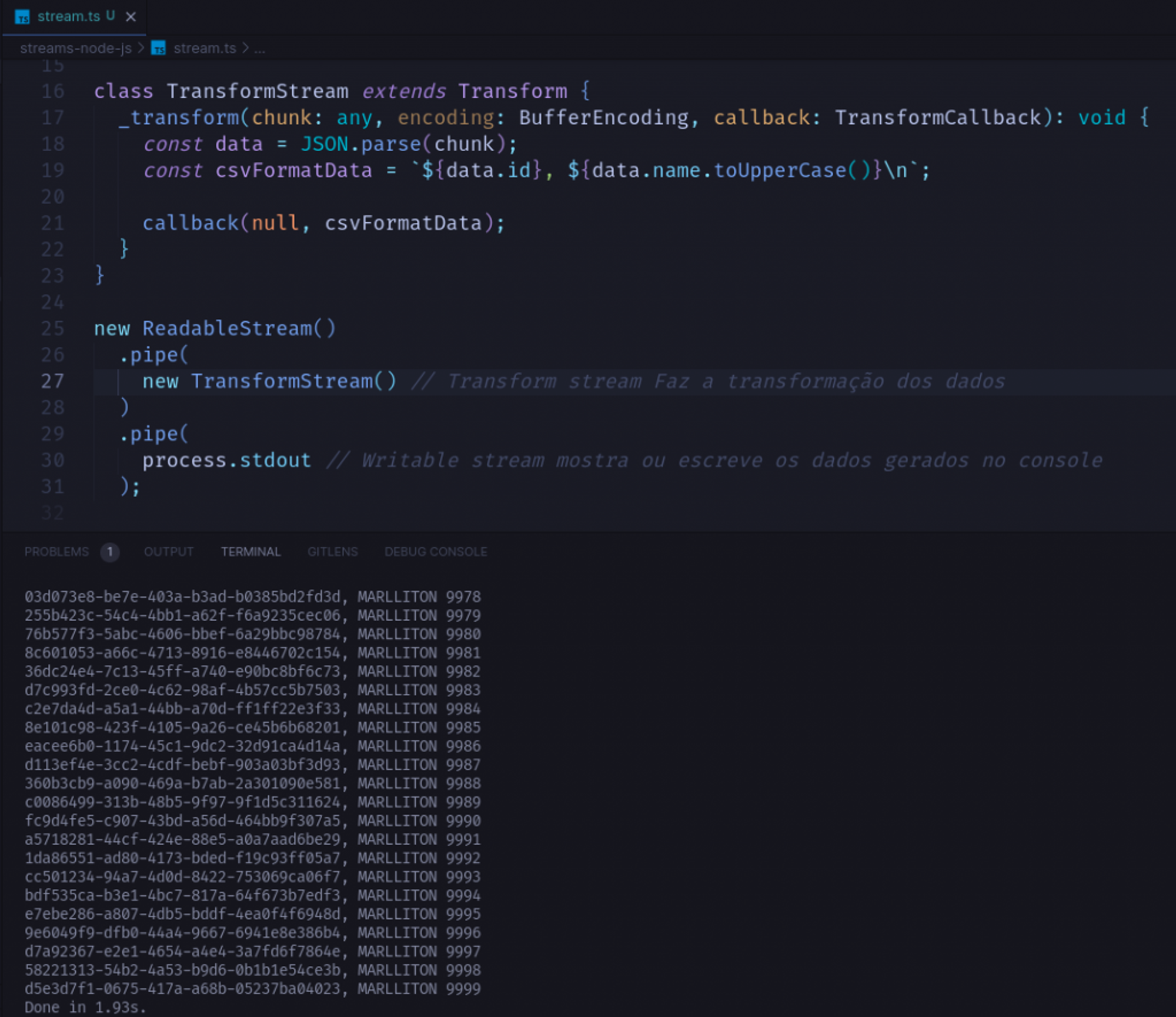 new TransformStream() // Transform stream Faz a transformação dos dados