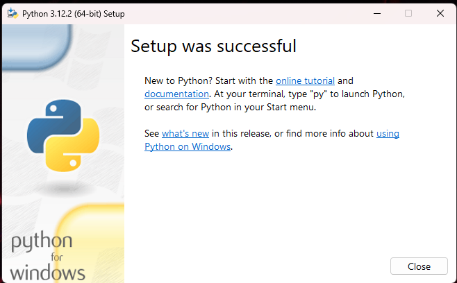 Depois da instalação ser finalizada, basta abrir o terminal e utilizar o comando python --version para testar a instalação. Talvez seja necessário reiniciar sua máquina para conseguir obter o resultado esperado aqui.